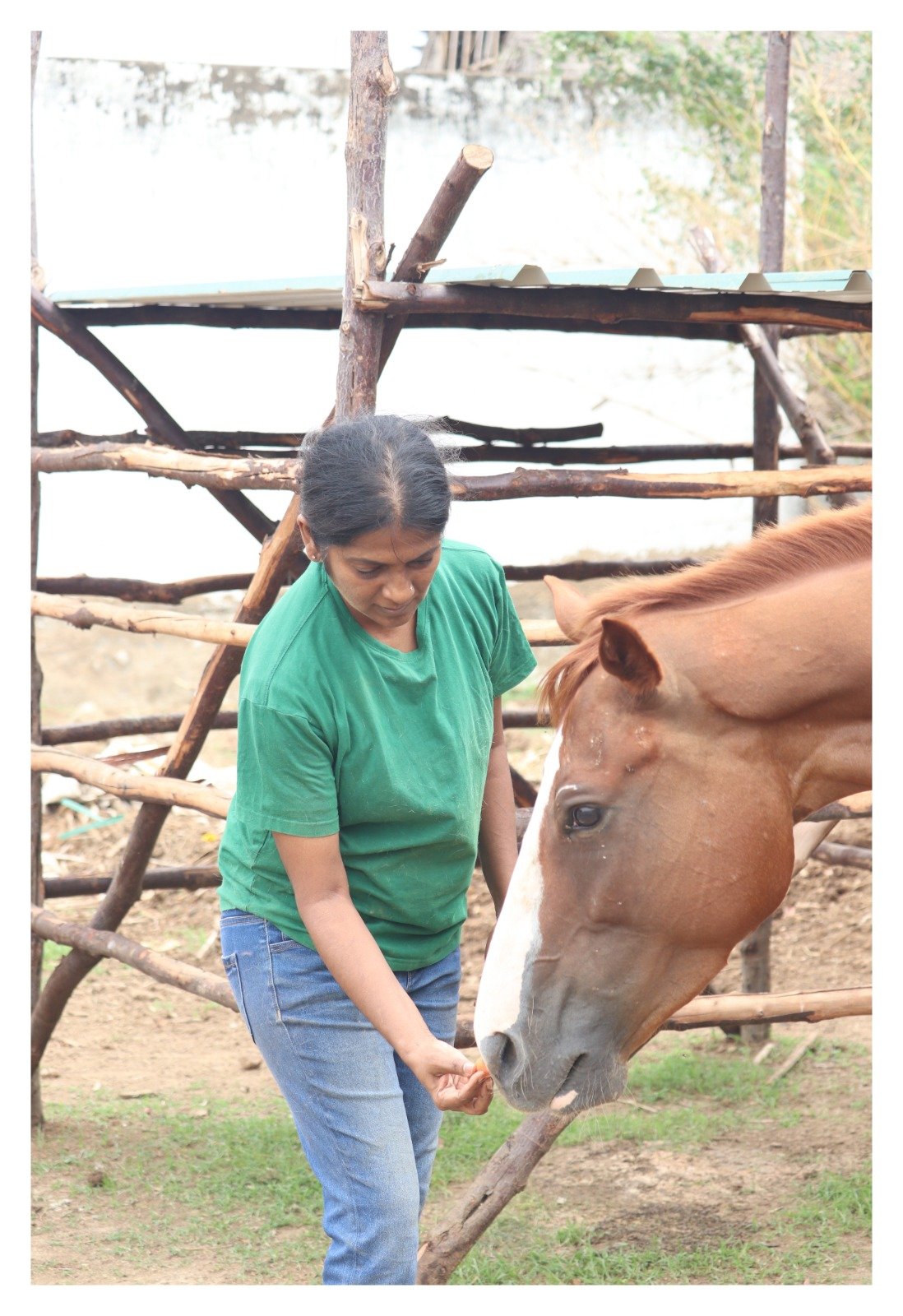 She otherwise runs a unique " Cage free - Chain free " shelter for more than 900 animals- cows, horses, ponies, donkeys, dogs, cats, pigs, camels and birds -who live out their second chance in life in peace and with no fear - in absolute freedom until their natural death - in Thiruvallur in Tamilnadu, South India. The shelter is a "forever home "for the blind , the sick, the dying, the injured, the abandoned, the condemned and those rescued from slaughter- each one of them a victim to purposeful human violence.