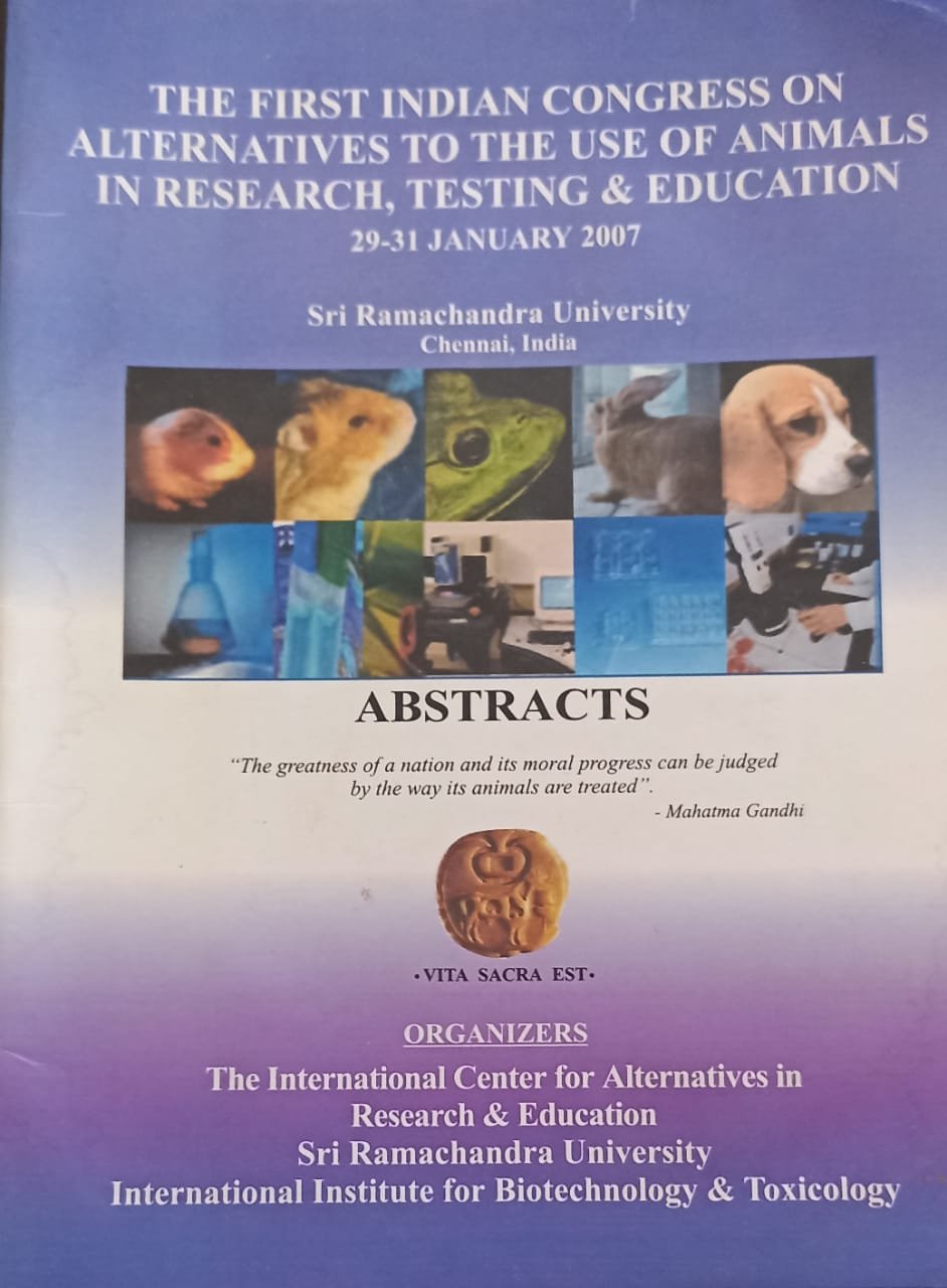 I-CARE organized THE FIRST INDIAN CONGRESS ON ALTERNATIVES TO ANIMALS IN RESEARCH AND EDUCATION IN 2007in collaboration with Ramachandra Medical University in Chennai.